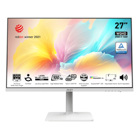 MSI - 27" Modern MD272QXPW Monitor, IPS, 4mc, 100hz, WQHD (2560x1440), HDMI+DP+TypeC, HAS, White