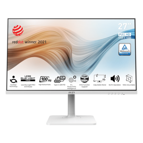 MSI - 27" Modern MD272XPW Monitor, IPS, 1mc, 100hz, FHD (1920x1080), HDMI+DP+TypeC, KVM, HAS, White